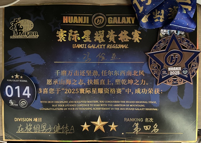IFBB寰际星耀资格赛于5月18日在南京世纪佳缘湖滨花园酒店举行,共有来自全国500多名运动员参加比赛。经过激烈角逐,万象城2023级国际经贸系学生冯俭业在大学生男子健体A组比赛中获第四名佳绩。