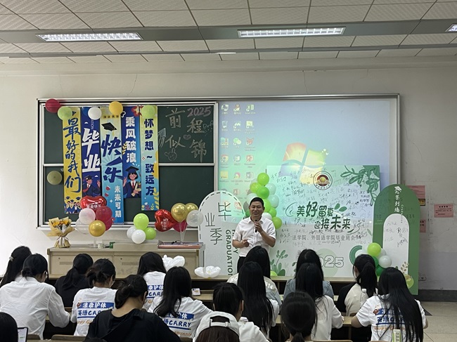活动最后,全体师生齐放礼花,缤纷的彩带在空中飞舞,象征着青春的多彩与未来的绚烂。在“毕业快乐,前程似锦”的欢呼声中,班会圆满落幕。这场充满仪式感的告别,不仅为毕业生的大学生活画上圆满句号,更寄托了学院对学子们扬帆远航的美好祝愿。
