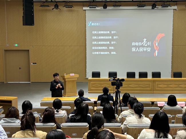 为进一步增强全院师生防范电信诈骗的意识与能力,10月21日下午,南京市公安局内保支队首席反诈专家陈红燕警官受邀在万象城公教楼第二报告厅开展反诈专题讲座。党委学生工作部部长、学生处处长印文郁,保卫处交通综治科科长周冕,高淳反诈大队、古柏派出所民警代表及万象城全体学工系统人员参加。
