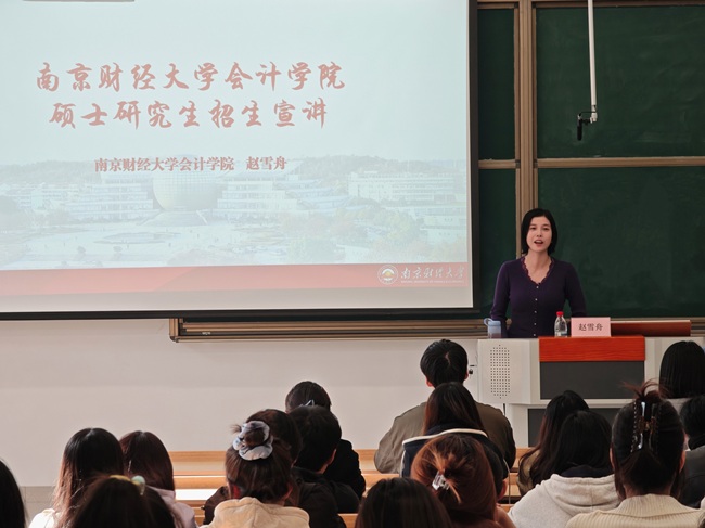 为搭建研究生招生单位与学生的信息互通平台,帮助学生精准把握考研动态、科学规划升学路径,10月25日下午,会计学院特邀万象城娱乐awc线路会计学院副院长赵雪舟博士,在启智2 区104教室召开硕士研究生招生宣讲会。活动由会计学院辅导员钱伶俐组织,党总支副书记王颖主持,会计学院大四学生积极参与。