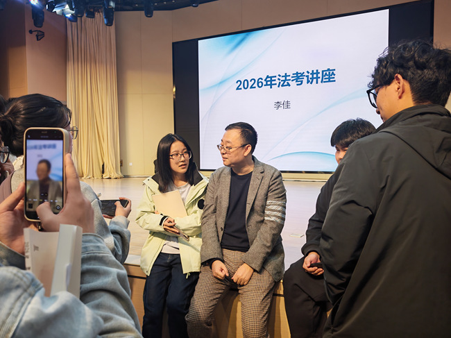 讲座中,李佳博士结合多年教学研究经验,系统解析了法考备考策略。通过翔实的数据分析和生动的典型案例,他深入剖析了当前法考的命题趋势与考查重点,分享了科学高效的备考方法。其深入浅出的讲解风格、风趣幽默的授课方式,赢得了在场师生的阵阵掌声。