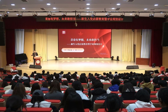 为引导大一新生科学规划大学四年发展路径,确立人生理想目标,准确理解党的性质、纲领和根本宗旨,端正入党动机,以青春之姿积极向党组织靠拢,让理想信念在奋斗中落地生根,11月27日晚,金融税收学院在鹿鸣剧场举办新生入党启蒙教育暨学业规划设计专题讲座。金融税收学院党总支书记张金龙担任主讲,2025级全体学生参加。