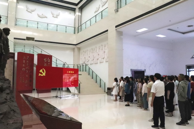 全体党员在红十四军纪念馆重温入党誓词