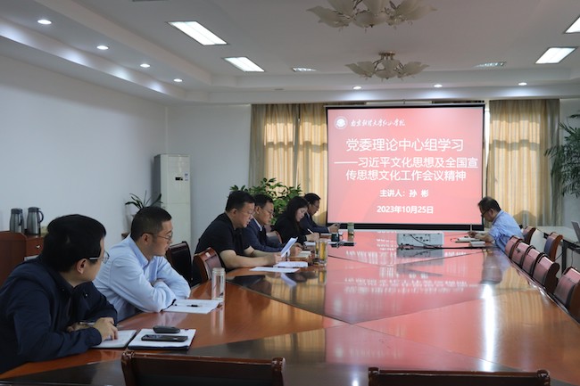 孙彬书记指出,全国宣传思想文化工作会议首次提出了习近平文化思想,这在党的宣传思想文化事业发展史上具有里程碑意义。习近平文化思想内涵丰富、论述深刻,明确了新时代文化建设的宏伟图景,是对马克思主义文化理论的丰富和发展,是指引我们宣传思想文化工作的强大行动指南。孙彬书记强调,全体党委委员要以忠诚拥护“两个确立”、坚决做到“两个维护”的政治高度,及时跟进学习党的理论创新最新成果,分阶段、按计划、有目标、高标准地开展相关学习活动,更好地将党的创新理论转化为干事创业的本领和力量,推动学院各项事业发展迈进新征程、展现新气象。