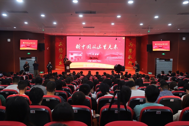 西柏坡纪念馆副馆长段彦峰在启动仪式上致辞,并为师生及嘉宾带来一堂题为《弘扬西柏坡精神,走好新时代赶考之路》的思政课。他从西柏坡时期伟大实践、西柏坡精神内涵和西柏坡精神的时代价值三个方面出发详细讲解了新时代西柏坡精神。他表示,新时代弘扬西柏坡精神,就是要始终保持谦虚谨慎、艰苦奋斗作风,以时不我待的紧迫感和使命感,始终保持昂扬奋进的精神状态,不断锤炼本领增长才干,为强国建设、民族复兴贡献应有的力量。