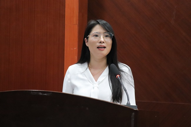专职纪检员李蕾作为党务工作者代表发言,她表示将珍惜此次培训机会,认真完成此次培训任务,以本次培训为起点,踏实工作、守正创新,为思政工作注入新活力,努力做到提高政治站位,强化责任担当;聚焦学思践悟,提升党务工作能力;坚持从严要求,遵守培训纪律。