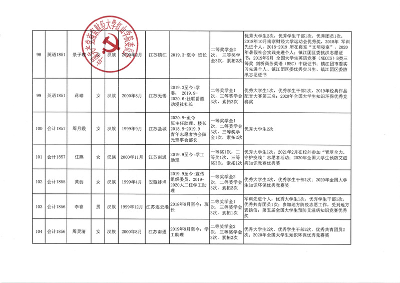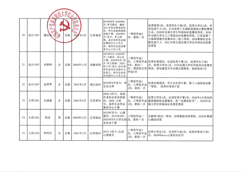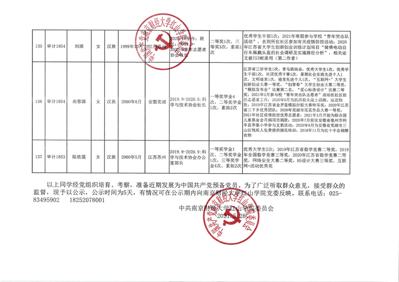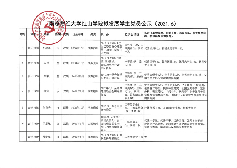 万象城娱乐awc线路拟发展学生党员公示(2021.6)