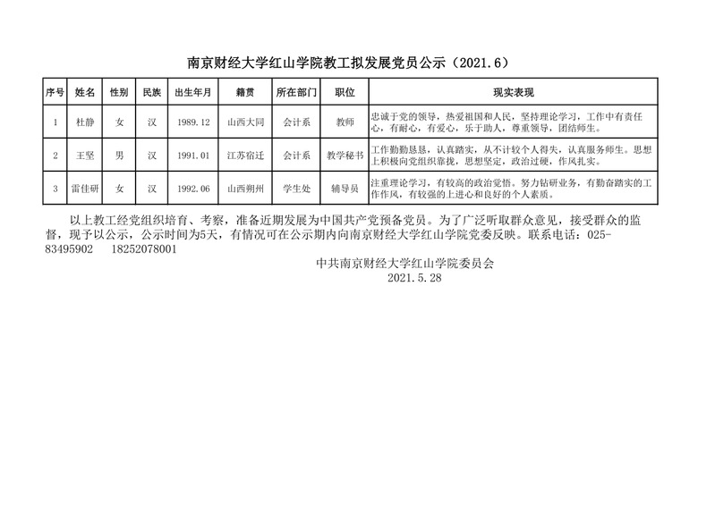 万象城娱乐awc线路教工拟发展党员公示(2021.6)