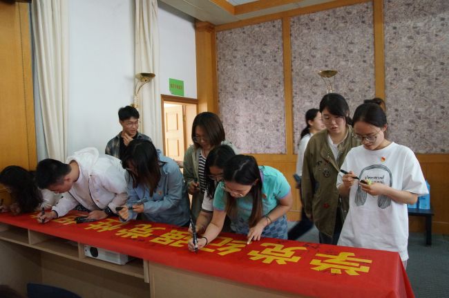 最后,在鲜红党旗的见证下,现场师生在印有“学党纪强党性 担使命做先锋”的横幅上纷纷签上自己的名字,用实际行动表达对遵规守纪的信心与决心。