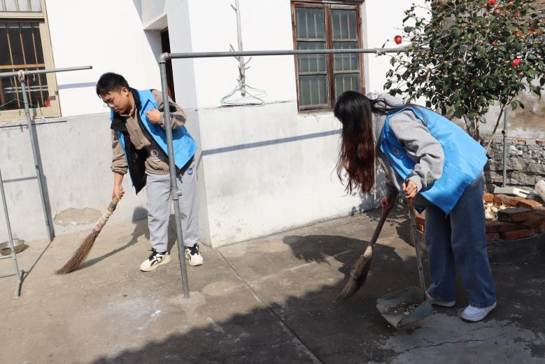 志愿者们帮助老人整理庭院
