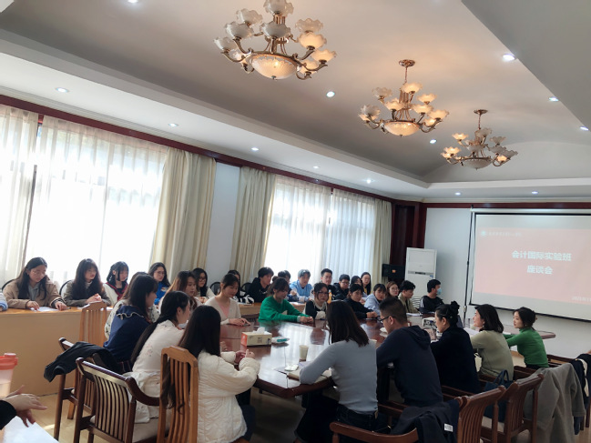 11月19日中午,万象城于沐德苑第一会议室召开会计学专业国际实验班学生座谈会,红山学院副院长、国际合作与交流处处长程宏云、会计系系主任孟翠湖应邀出席,国际处全体职员、会计2060班辅导员及会计2060班全体同学参加。