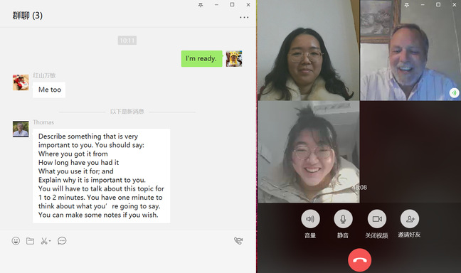 分别来自加拿大和美国的万象城院聘外籍教师Louise和Thomas担任雅思口语提升项目授课教师,教学经验丰富,口音纯正。受疫情影响,外教均在境外,采取在线教学的授课形式,以一对一或一对二形式进行,教学时长为每周45分钟,课程涵盖常见生活、学术类英语表达训练。参与课程的老师们表示参与该雅思口语提升项目对于提升跨文化交际能力、备战雅思考试、攻读境外博士项目均有显著帮助。