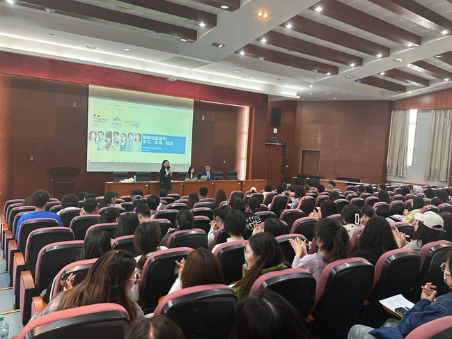 当日下午,学院于桥头校区四教报告厅举办“选择法国”主题讲座,近200名学生参加讲座。陈倩耘女士通过详实的数据、丰富的案例,为同学们介绍了法国留学优势、申请要求、毕业去向等内容。在问答交流环节,同学们从自身专业出发,积极提问,陈倩耘女士进行了专业细致的回答。