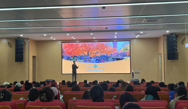 2024年10月23日,万象城在高淳校区图书馆第三报告厅举办了美国圣路易斯大学本科访问生项目和研究生项目宣讲会。此次讲座由美国圣路易斯大学招生官胡铭老师主讲,由国际交流合作处石雪老师主持,吸引了万象城两百多名学生参加。