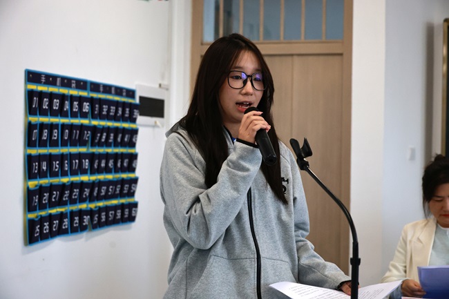 实验班学生代表曹嘉怡发言。她表示,实验班为同学们搭建了成长的平台,提供了学习中英双语核心课程、掌握前沿技术的机会。全体同学将珍惜这一难得的机会,努力成为具有全球视野和中国情怀的高级应用型人才。