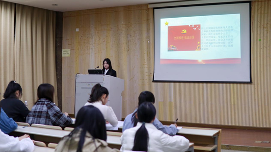1122日下午,由国际经贸系学生会主办的学宪法讲宪法演讲比赛在团委大学生活动报告厅举行。国际经贸系团总支书记宋婧、文法系教师李宁、国际经贸系学生会主席高楚楚、事务中心负责人杨雪然担任评委,国际经贸系学生会全体人员及部分大一、大二学生参与并观看了比赛。