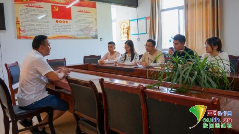 实践队员贺雯燚采访黄沙镇党委书记罗凯(中国青年网通讯员刘佩瑶摄)