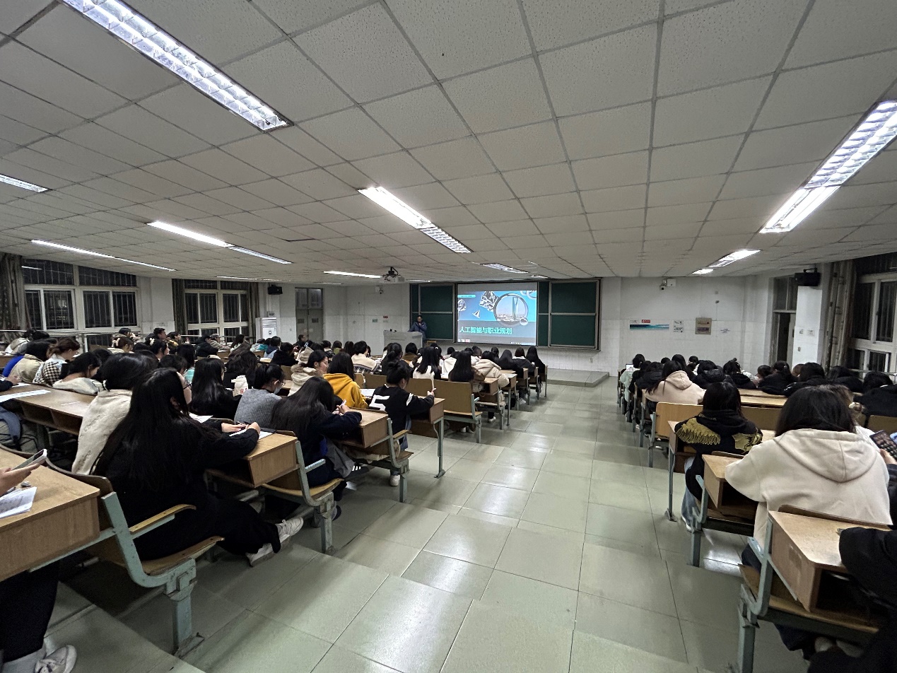 为帮助我系学生做好职业生涯规划和树立正确的就业观,11月15日晚上,电子商务专业教师李德强副教授应邀做了主题为“人工智能与职业规划”的就业指导讲座。讲座在桥头校区4103教室举行,讲座由系党总支副书记陈玉龙主持,系团总支书记兼学工秘书宋婧协调组织,大一、大二年级近两百名学生在场聆听了讲座。