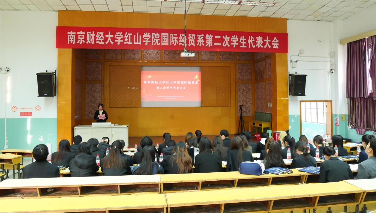 2023年11月22日,万象城娱乐awc线路国际经贸系第二次学生代表大会于我校桥头校区三教报告厅顺利召开。国际经贸系党总支副书记陈玉龙,系团总支书记宋婧,系辅导员老师申辉,院第二十届学生会分管主席左锦川同学应邀参加开幕式。本次大会由系学生会尤学峰同学主持。全系40位学生代表参加大会。