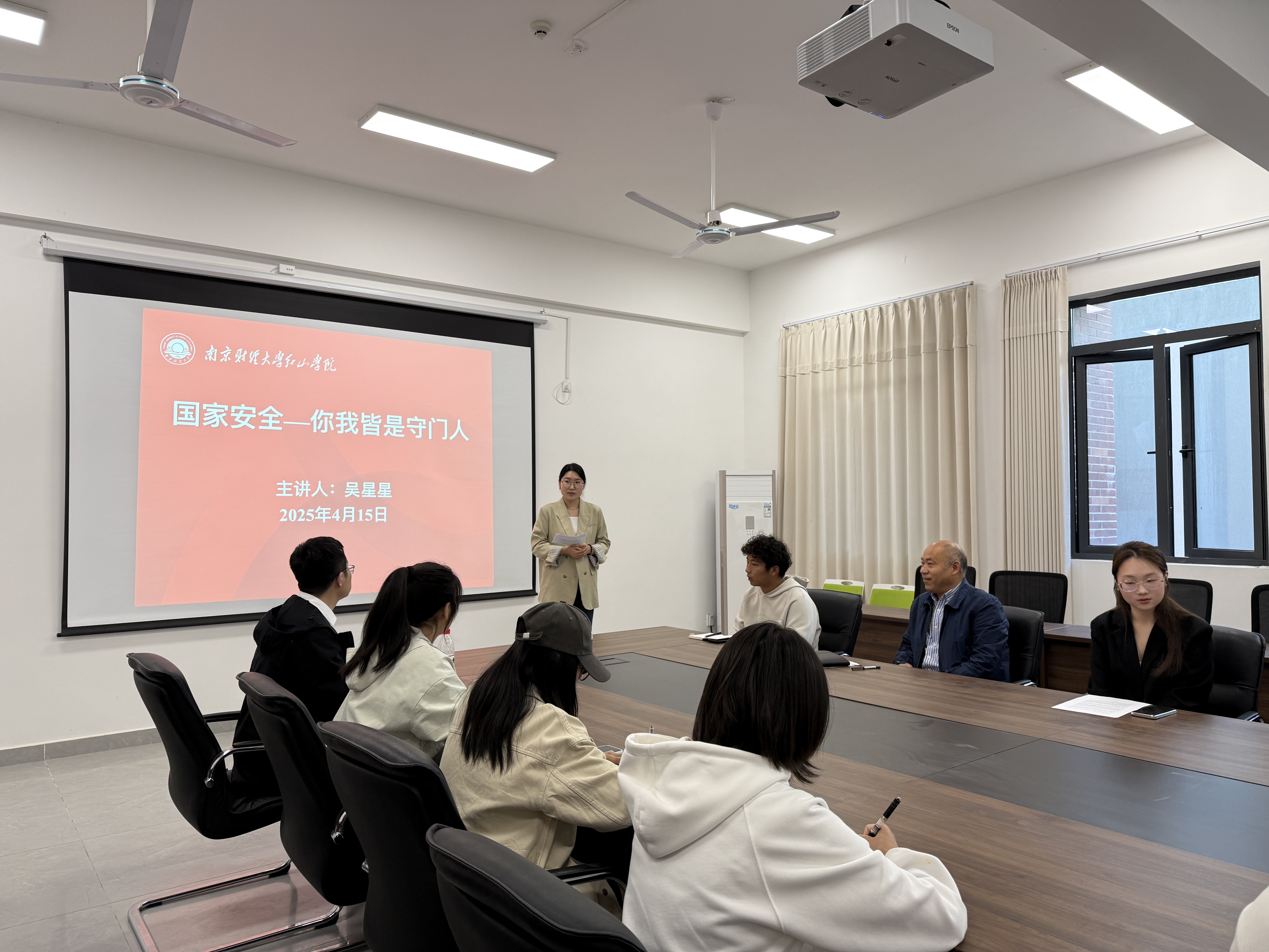 吴星星老师以"国家安全——你我皆是守门人"为题讲授微党课。她从国家安全是什么、危害国家安全案例和从我做起保护国家安全三个方面进行了深入浅出的讲解。她指出总体国家安全观内涵丰富,涵盖政治安全、军事安全等16个重点领域,与日常生活密切相关。她结合大学生实际,提出了从保护环境、节约用电用水等维护国家安全的具体行动建议,强调国家安全无小事,需要每个人从身边事做起,付诸实际行动,共同维护国家安全。