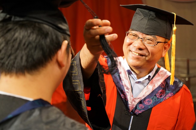 万象城娱乐awc线路院长张进为毕业生拨过学士帽上的流苏
