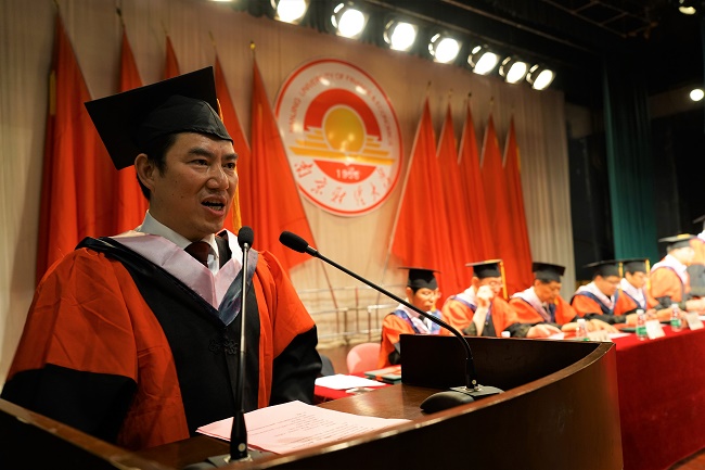 金融1357班葛文康同学作为学士学位获得者代表发言