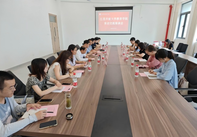 罗殷书记介绍了江苏开放大学“四类教育”协同发展的体系结构及教育学院的专业建设、课程建设和党建工作。她表示,两院之间存在很多相似之处,希望未来在育人、创新创业建设、教学竞赛、党建等方面展开更加深度的合作。