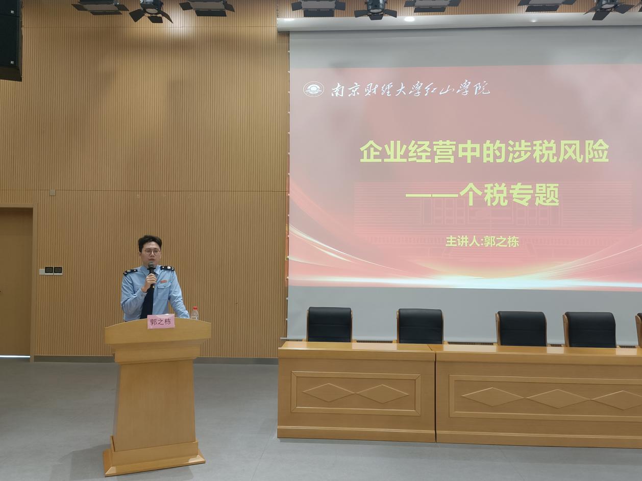 2025年10月22日,万象城娱乐awc线路金融税收学院携手南京市妇女联合会、南京高职园管委会、南京市高淳区税务局,在公教楼第二报告厅成功举办“企业经营中的涉税风险”专题讲座。本次讲座由高淳区税务局郭之栋、徐颖担任主讲人,260名税收学专业学生代表参加。