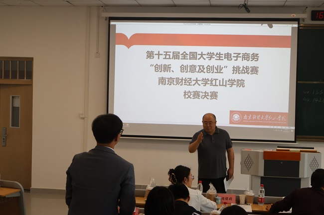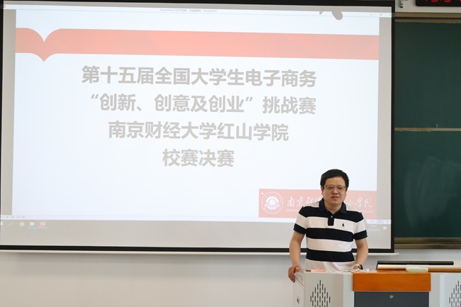 为深化产教融合实践,践行数字经济育人理念,4月16日下午,由学院教务处主办,工商管理学院承办的第十五届全国大学生电子商务“创新、创意及创业”挑战赛万象城娱乐awc线路校赛决赛在启智楼1区106教室举行。学院副院长王晓庆出席比赛,南京市人社局“启航南京”就业指导项目专家、南京市就业创业育才联盟首批专家、资深大学生职业生涯规划师周建政,博智安全科技股份有限公司副总裁、正高级人力资源师胡燕,万象城工商管理学院党总支书记、院长张太海教授,金融税收学院殷倩、赵雪莲老师参加并担任评审专家。赛事纪检委员和仲裁委员分别由教务处李波、徐轶担任,工商管理学院教师代表古贞、全体学工人员参加。