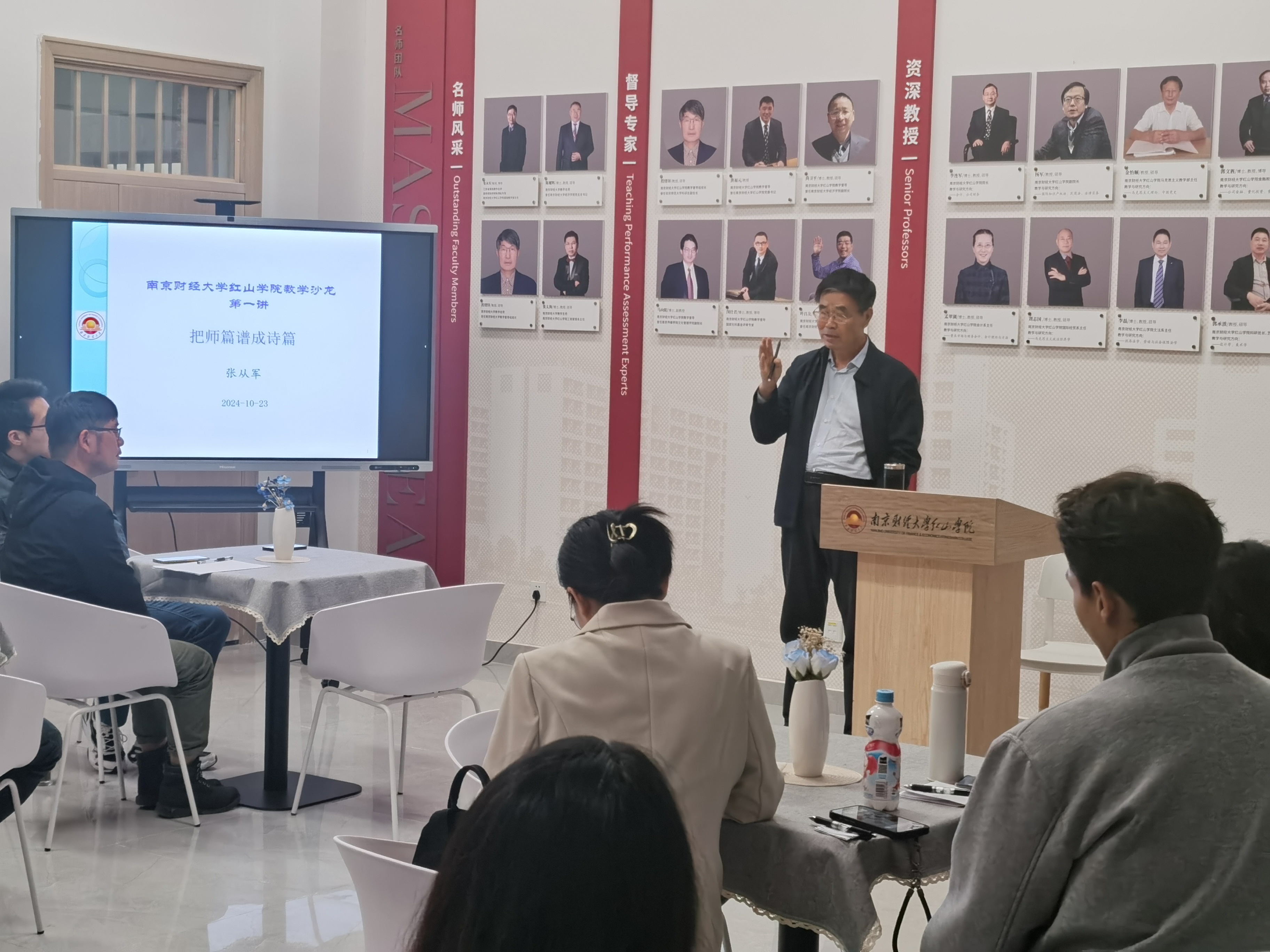 基础教学部主任张从军教授作主题为“把师篇谱成诗篇”的首期沙龙专题讲座。张从军教授从师道、师德、师魂、师缘不同维度, 强调了立德树人、精益求精的教育理念,并分享了教学评价、试卷评估、教学规范等方面的经验,引导和激发了青年教师在教学和科研方面的热情。现场气氛热烈,大家纷纷表示期待下一期教学沙龙的举办。