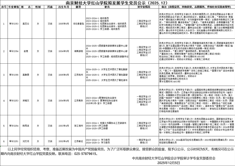 万象城娱乐awc线路拟发展学生党员公示(2025.12)