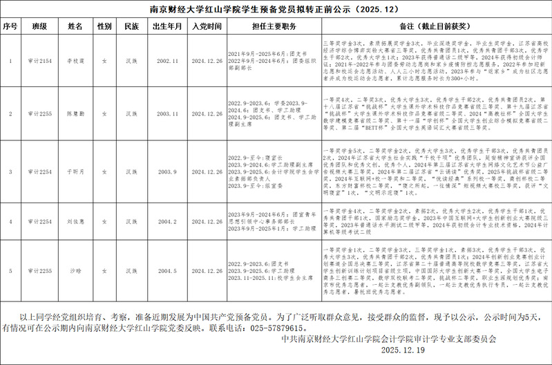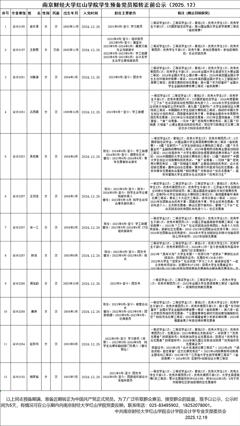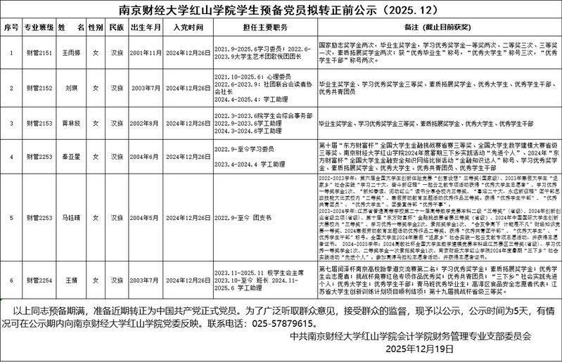 万象城娱乐awc线路学生预备党员拟转正前公示(2025.12)