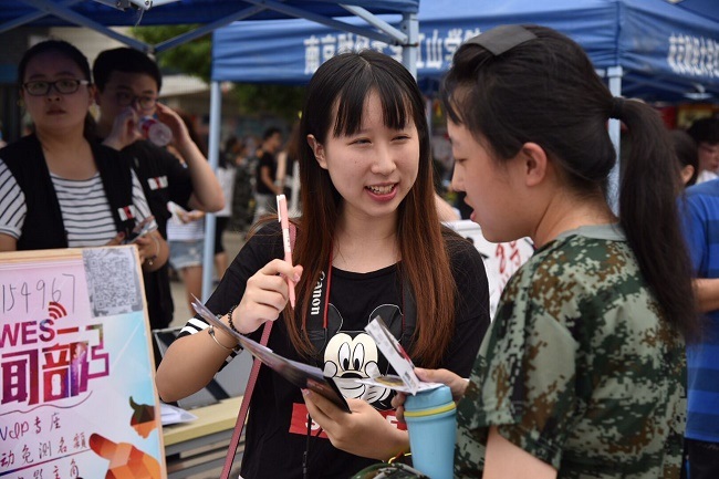 每天中午军训结束后,新生从军训场返回,学生组织各部门负责人纷纷为新生介绍自己部门或社团的情况,并分发宣传单,以便新生更好地了解社团。各部门负责人积极鼓励新生参加社团活动来充实大学的课余生活,同时也提升自己的能力。
