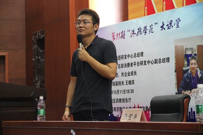 讲座中,许总从企业与个人发展、人性、互联网发展趋势三方面与同学们分享成长成才与事业发展的宝贵经验。首先,许总介绍到,苏宁集团从1990年开始创业之路,历经空调专营、综合电器连锁、全品类互联网零售三个阶段。现今已成长为年销售规模超过3000亿、拥有职工8万人的中国最大商业企业。许总以其在苏宁13年的发展经验告诉我们,个人与企业的发展都会经历从小到大、由难到易的曲折过程,重要的是要坚持梦想、不断创新、提升核心竞争力,实现企业和个人的转型升级。其次,许总从人才遴选和用户体验两方面指出“人性”在个人成长中的重要性。希望同学们能够养成科学严谨、脚踏实地、乐观向上的人生态度和行为习惯,以一颗真诚之心对待自己、企业和用户。最后,许总详细分析了互联网在信息传播和提升社会效率上的重要作用,告诫同学们要多读书、多思考,充分把握现代信息技术的发展趋势,主动适应社会潮流。