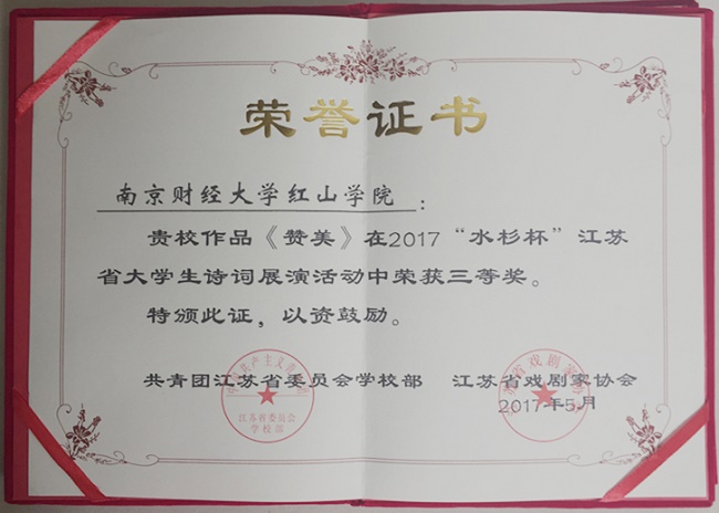 5月11日,由共青团江苏省委学校部、江苏省戏剧家协会主办,南京林业大学承办的2017年“水杉杯”江苏省大学生诗词展演活动颁奖典礼在南京林业大学隆重举行,来自32所高校的师生代表共同与会。