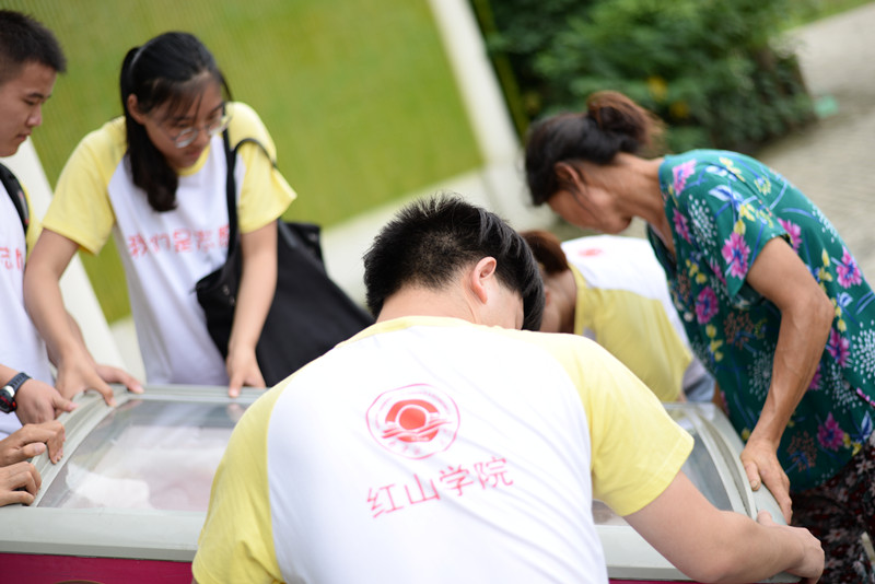 随后,实践小分队出发前往洪泽湖湿地公园。夏天的洪泽湖湿地公园有一种奔放的美,五万亩1008种荷花竞相开放,恍若天上瑶池。通过参观园中景区和采访工作人员,我们更加了解到湿地对于生态的重要性。湿地空气常年保持国家一级标准,孕育了尽百余种鲜花、194种50万只珍稀水鸟、70余种洪泽湖鱼类、200余种水生植物。在实践途中,小分队秉承当代大学生志愿者助人为乐精神,主动帮助老奶奶将沉重的冰柜抬下台阶,并与景区志愿者服务站志愿者合影留念。