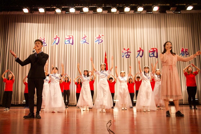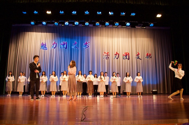 最后,观看团委组织部寄语视频,歌乐团带来的《最美的太阳》。本场晚会至此接近尾声,团委指导老师田仁连、福建路校区团总支书记陶国栋、桥头校区团委组织部部长盛佳瑜上台为获奖班级颁奖,晚会拉上帷幕。