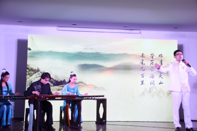 本次晚会由马维衡老师、张为老师和灵机古琴社参与演出。首先,晚会由一段古琴介绍视频为先导,充分展示传统古琴的风采与魅力,吸引同学目光,调动现场气氛,并在视频最后向观众展出了各个乐器演出时的礼仪与注意事项。活动正式开始后,由灵机古琴社表演的器乐合奏:“沧海一声笑”,通过清脆的古琴、沉闷鼓声,悠扬箫声展现出曲目的豪迈沧桑,展示出古琴演奏的多样性。一曲灵机古琴社团的“关山月”承接“沧海一声笑”,伴随诗朗诵表现出了古琴古声古色的情调,把同学带入到古时沙场将士角色之中。随后,是由张为老师带来的两首古琴独奏曲目:“流水”和“梅花三弄”。张为老师用娴熟的古琴弹奏技艺向同学展示这两首曲目如流水般的琴声,让人久久沉浸于古调柔和之中,曲末流水之声复起,缓缓收势,整体乐曲婉转柔美。随着演出的进行,由马维衡老师演奏的“神人畅”、“忆故人”,古琴社的“卧龙吟”与“阳关三叠”依次弹奏,赢得了同学的热烈掌声与喝彩。