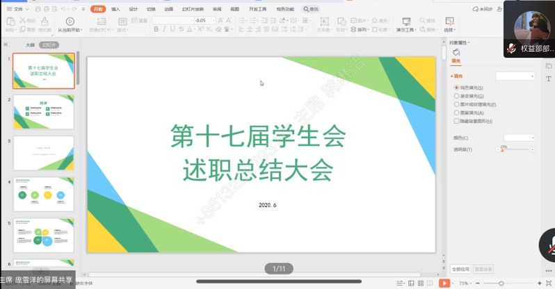 2020年6月14日中午12点,学生会2019-2020第二学年述职总结大会在线上顺利开展。学生处处长陈燕、团委副书记景红纬以及第十七届学生会全体成员参加本次大会。