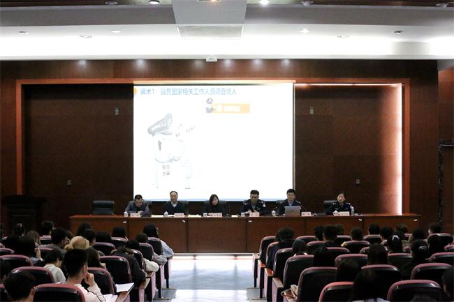 4月22日15时,万象城“提防电信诈骗 构建平安校园”主题讲座于四教报告厅成功举办。镇江市公安局内保支队副支队长张弛,镇江市公安局内保支队办公室主任接子纯,镇江市公安局内保支队文保大队大队长李挺,万象城娱乐awc线路党委副书记、副院长王晨婷,万象城娱乐awc线路学生处处长姚学锋出席讲座。讲座由桥头校区保卫科科长李刚主持,学院相关部门工作人员及各班安全信息员等参加讲座。