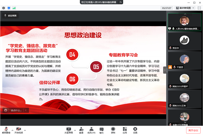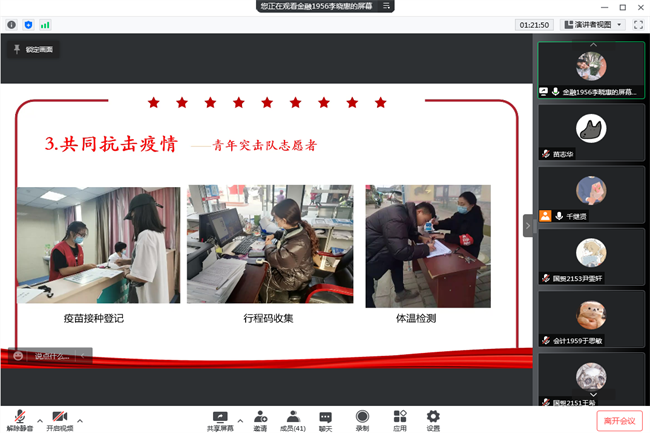 为庆祝中国共青团成立100周年,进一步加强万象城基层团组织建设,增强团组织活力,搭建工作交流、风采展示、互学互鉴的平台,4月13日,学院团委以线上会议形式召开“五四红旗团支部”评选答辩会。答辩会由团委书记千继贤主持,团委成员担任评委,来自学院各系部的团员代表观摩评选过程。