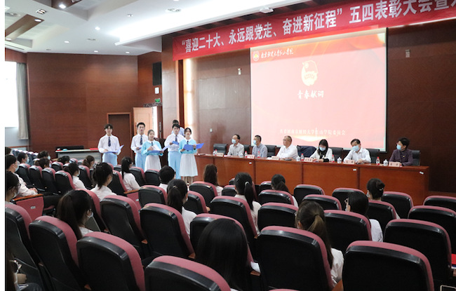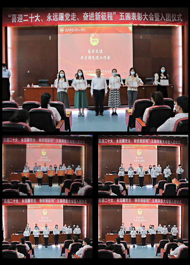优秀青年团员分享青春故事,“信仰公开课”省级示范课主讲人金融2053班高爽同学做题为《青春无悔 强国有我》的信仰公开课,优秀共青团干部获得者代表、金融2051任思佳同学,优秀共青团员模范、法学1951牛晓娜同学,志愿先锋代表、国贸2153的瞿子恒同学及创新标兵、贸经1851沈树威同学,共青团先进工作者获得者代表、国际经贸系宋婧老师,通过现场发言或线上视频方式,分享了各自的青春故事,饱含深情地表达了传承五四精神、爱国爱党、志存高远、奋发有为的决心和信心。