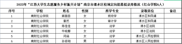 为进一步聚焦乡村振兴项目,激发广大青年和大学生志愿者为乡村发展贡献青春力量,根据《关于实施2022年江苏大学生志愿服务乡村振兴计划的意见》(团苏委联〔2022〕5号)文件精神,院团委与南京市溧水区设立“校地对接定向志愿服务岗”。经过个人申报、系团总支推荐,院团委审核和地方面试后,拟录取顾苗田等6位同学为“大学生志愿服务乡村振兴计划”溧水区校地对接志愿者,拟录取名单如下: