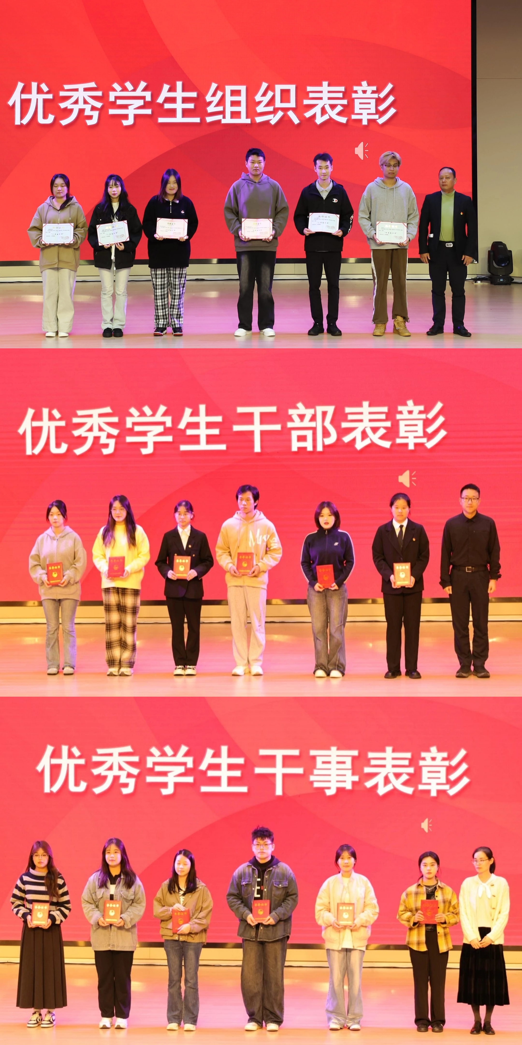 金融税收系团总支书记许艺蓝宣读《关于表彰万象城娱乐awc线路2023-2024学年优秀社团、优秀学生干部、优秀学生干事的决定》,授予青年志愿者协会等六个社团“优秀社团”荣誉称号,授予周逸湉等85位同学“优秀学生干部”荣誉称号,授予詹胡婧荧等684位同学“优秀学生干事”荣誉称号。与会嘉宾为获得表彰的学生代表颁奖。