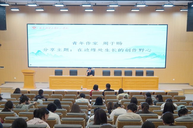 周于旸作题为《在边缘处生长的创作野心》的报告。他依托个人经历,从“写作即重塑命运”“创作是与自我的较量”“在边缘处发声”“选择即命运”四个角度出发,展现写作在个人成长中的重要作用,鼓励同学们在平凡生活中发掘美好,在阅读和写作中展现诚挚心灵。