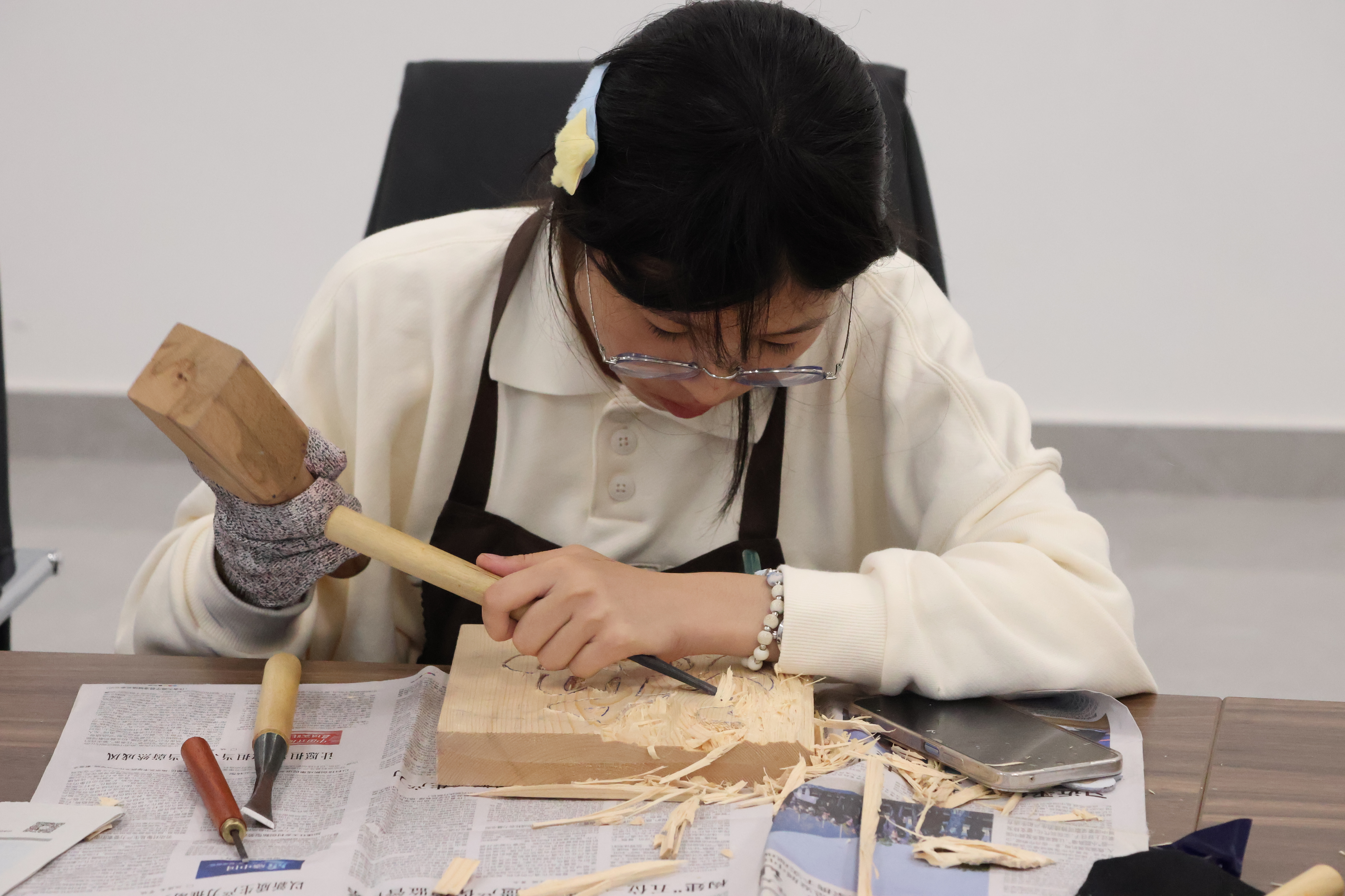 10月18日,“意匠”非遗传承社在智圆楼B区529会议室举办“古艺新刻”木雕实操活动。活动在传统技法的基础上融入立体浮雕,使用镂空等手法,以学习实践为核心,吸引新生成员沉浸式体验木雕技术。
