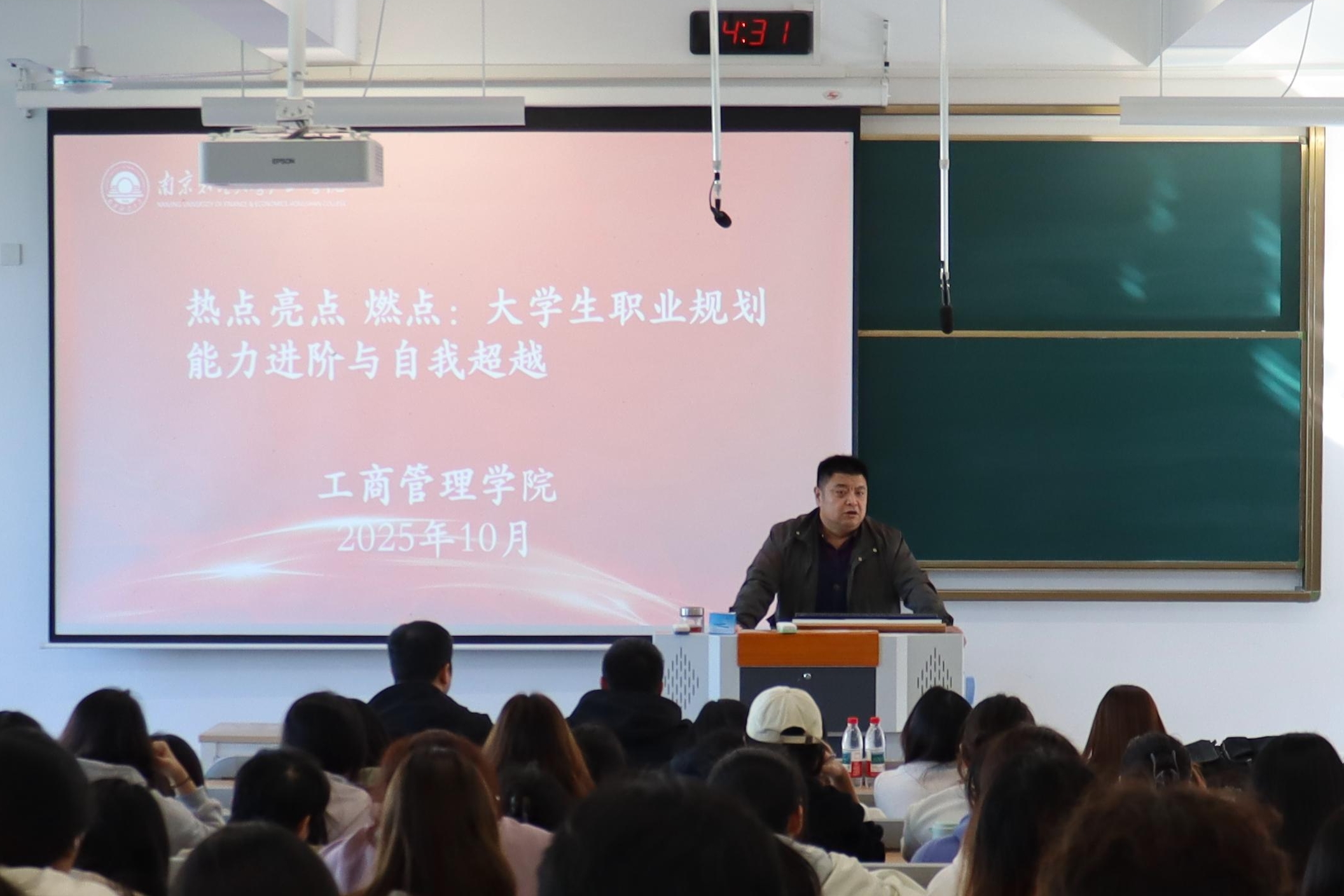 10月22日,工商管理学院在启智一区204教室举办以“热点 亮点 燃点:大学生职业规划能力进阶与自我超越”为主题的职业规划讲座。讲座由南京大学教育学博士、职业生涯规划导师、南京工程学院马克思主义学院副教授黄成亮主讲,沈志鹏老师补充,团总支书记何玉凤主持,两百余名学生参与。