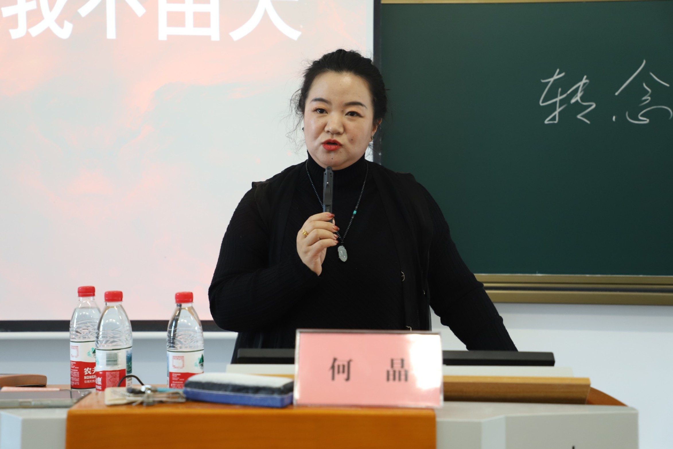 何晶校友围绕“市场营销专业的职业生涯规划”这一核心议题展开深入交流。她以自身经历为切入点,讲述市场营销的相关概念,并从学生角度来引导学生如何去改变自己的人生。随后,通过“生活中的市场营销”与学生进行互动问答,现场解惑。同时,她细致讲解市场营销应该具备的思想和格局,分享市场营销相关书籍《营销管理》,清晰解释市场营销的深层含义。