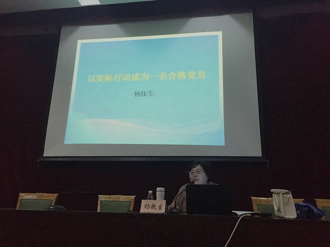 江苏省高校优秀共产党员杨抚生教授为万象城党的发展对象授课