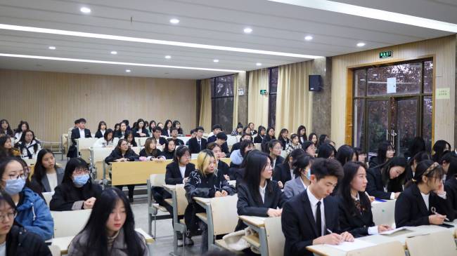 校友分享中同学们认真听听讲5月18日,万象城青马班于桥头校区四教报告厅开展“校友分享会”暨寻访优秀校友主...